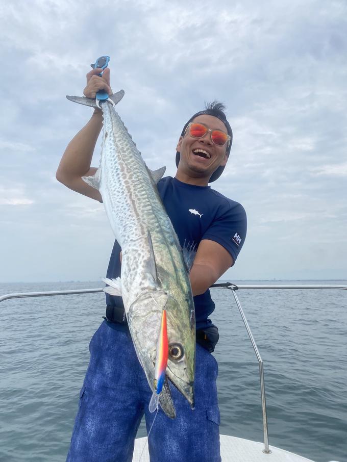 三重の四日市から出港している シーチャレンジャーさんにてサワラキャスティング!ミノーのジャーキングでメータークラスを キャッチしました!ラインはTX8にカーボナイロンの30lb。ノットのガイド抜けもよく、結束強度も出るので信頼のラインシステムです