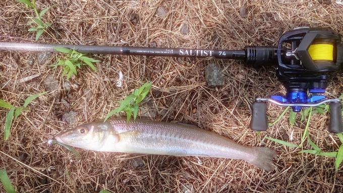 宮津釣行時のゲストフィッシュ、キス27cmです。グリーン系のワームに反応が良くてキスが4匹釣れました。