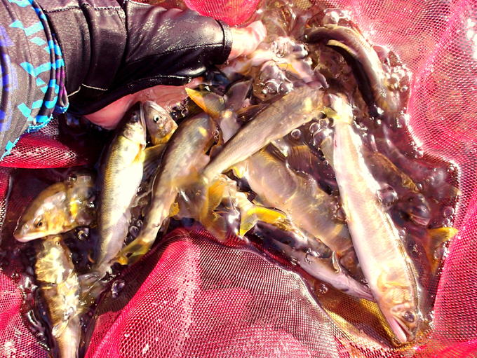 今日も夕方のみの試し釣り。アーマードFH鮎水中糸0.06号がスピーディーに野鮎を連れて来てくれました。