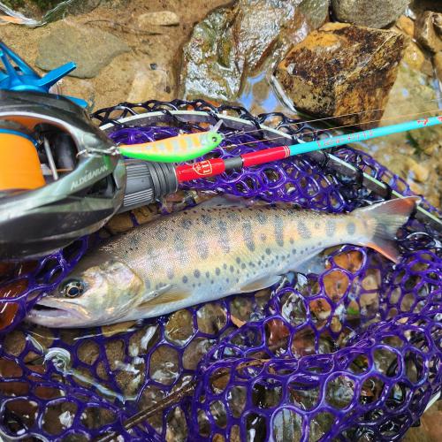 禁漁間近の渓流に行きました。 少し山の奥地に行きイワナ、ヤマメを狙います。 ヘビーシンキングミノーをメインにランガンしていきヤマメ24、20cmを釣りイワナ22cm、18cmの釣果でした。アーマードF+トラウトは見やすいのでルアーのトレースコースをとるのに最適です。淡水でもピンクフロロは問題ないですよ。