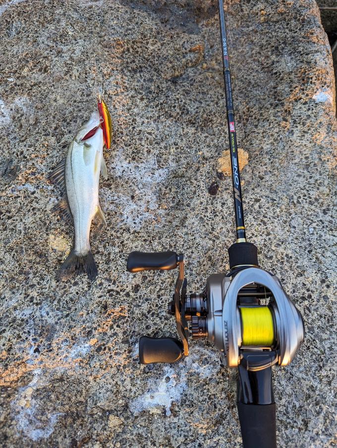 ベイトキャスティングの練習がてらに、シーバスゲーム♪ ミノーの早巻きで、セイゴサイズが入れ食い! アーマードラインとベイトとの相性もバツグンで、いい練習になりました。