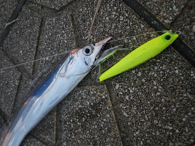 淡路島に太刀魚釣りに行ってきました! 横風4mくらい吹いてて、非常に釣りが やりにくかったのですがモンスターショット95の 飛距離を生かして広範囲に探った結果、 水面下5mくらいフォールさせた所で喰いました!