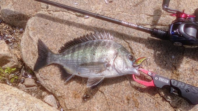 久しぶりに淀川へ釣行しました。少し濁った感じのデイゲームなので、リアクション狙いのバイブレーションチニングです。ボラが多くて少し苦戦しましたが、小さいながらチヌは釣れました。ヒットルアーはソリッドバイブ55HGRでした。日中の淀川で、少し濁った感じの時には強いのがHGRカラーで私的に出番の多いカラーですね!