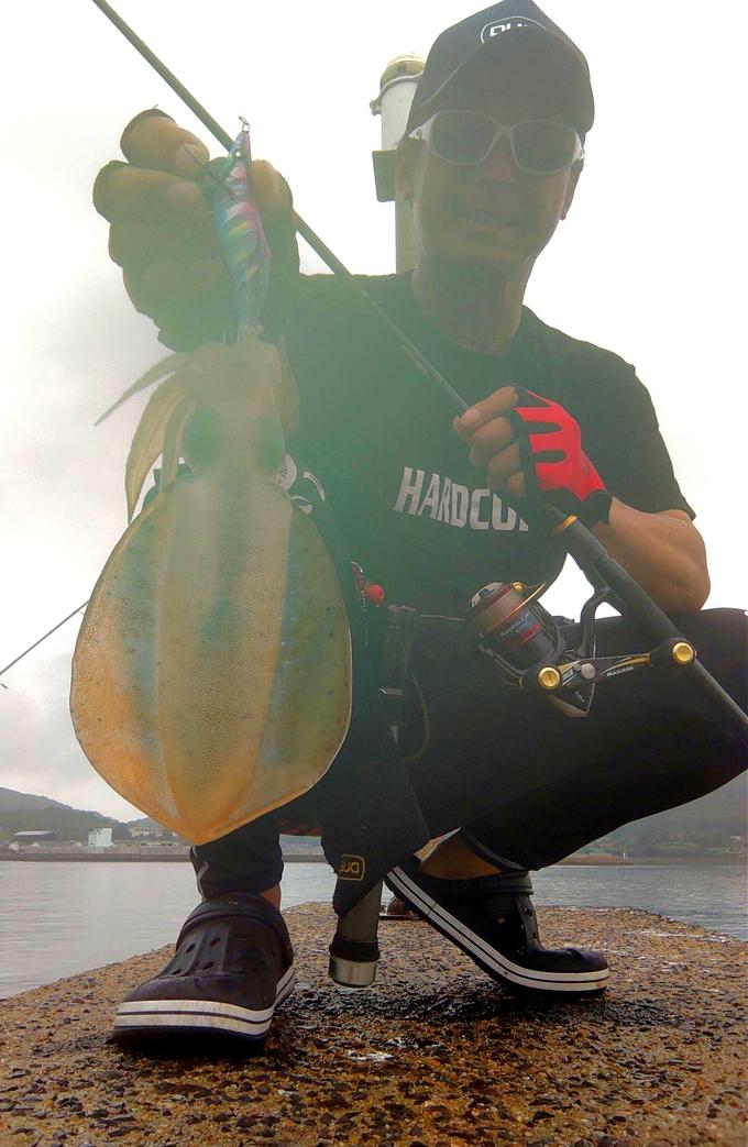 今日は予報が外れて朝から雨模様。フェリーで島は渡る予定をキャンセルして平戸島をランガンする事に!今回唯一SUPERエックス4にラインナップされている0.4号を使用して3号サイズをロングキャストして広範囲をスピーディーにチェックして反応得られた場所をじっくり誘って降りしきる雨の中小さな当たりも見逃さず7杯手にする事が出来ました!!