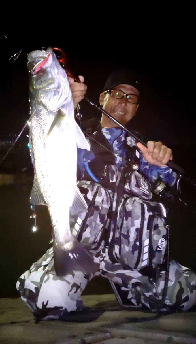 夕飯が遅くなり潮位が高いタイミングでフィールドイン!!表層でボイルも見られないのでソリッドバイブからスタートすると一投目からバイト!