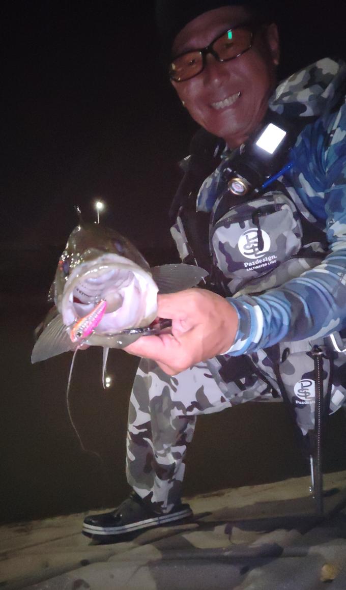 40分程の釣行で70頭に13本とソリッドバイブ大活躍!!潮上にソリッドバイブをキャストしてスローリトリーブでボトムで転がす様に明暗に流し込むとバイトがあり、ほぼ丸呑み状態!!