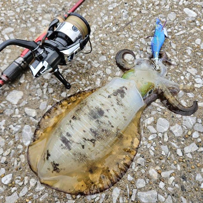 天草でエギング、夜は赤系の闇夜ローズ、日中はすみ潮ブルーで。 フィンエースは本当に良く釣れます!!!
