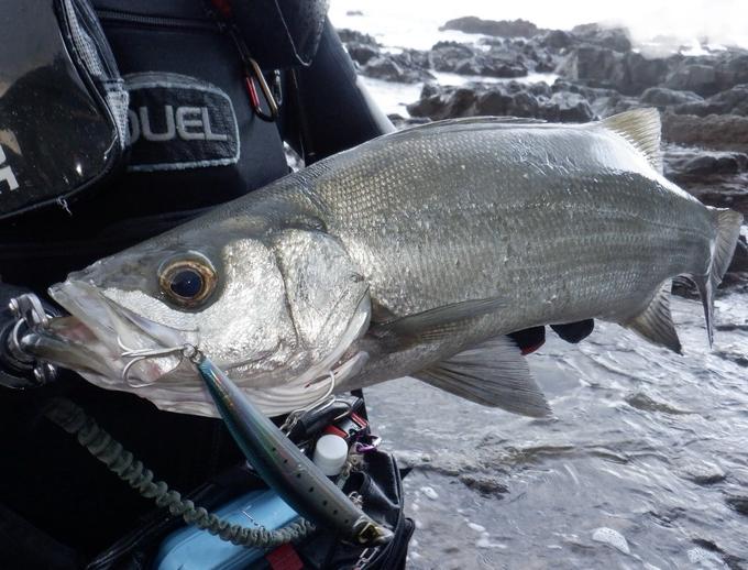 磯ヒラ行ってきました。気象予報は北東風波高3mのウネリ付き。風が当たるエリアはシケ過ぎでショアラインは危険な状況と判断。風裏エリアにエントリーすることに。前日日中に西風が吹いていたこともあり、想定よりいい波がありました。ゴロタのシャローが続くこの一帯、先ずはアイルマグネットTGダータースリム145Fで、ブレイク付近を狙い撃ち。すると直ぐに反応あり!60cmクラスの若ヒラが姿を見せてくれました。その後、さらに沖の沈み根をメインに狙いランガン。飛距離クラス最強のモンスターショット95Sで、サイズアップに成功!全身潮塗れになりましたが、とても楽しめました。