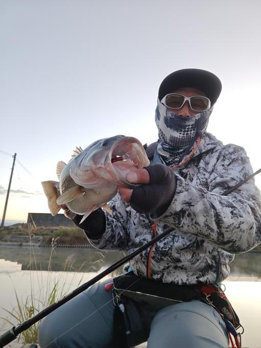 放射冷却で冷え込んだ朝!!クリーク中央部に沈んだリップラップに当てて止めた瞬間にバイト!!50には僅かに届かなかったが綺麗で太い魚体に満足!!