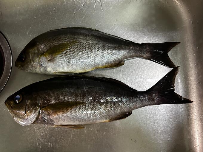 グレ&イサキ狙いで中泊へ釣行した。底物で実績の高いドンブカリへ渡礁。まずは魚を寄せるため、足元から大量のマキエを投入するが、一向に魚影が確認できない。竿2本先までマキエを多めに投入するが、あたりが全く出ない状況が続くため、グレに見切りを付けイサギ狙いに仕掛けを変更する。いつものようにウキをウェーブマスター1号にチェンジ。竿1本〜1本半をダイレクトに攻めてみる。餌取り(ベラ)に悩まされながらも、なんとかターゲットのイサギを5枚・石鯛1枚の釣果を出すことができた。一緒に渡礁した釣友(4人)もこの仕掛けでイサギ・オオモンハタの釣果をあげることができた。