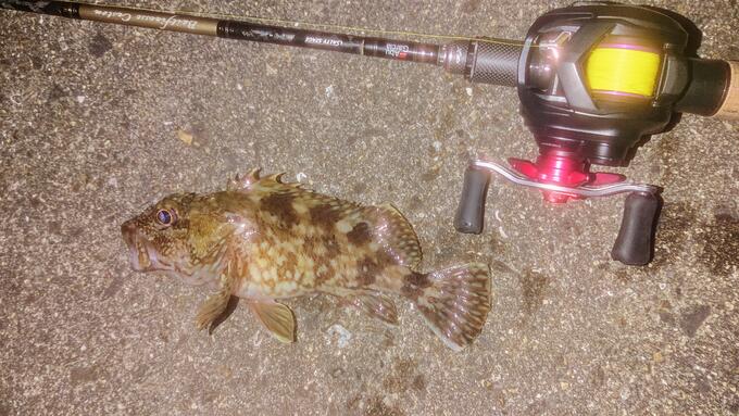 今時期の淡路島ライトゲーム定番魚はガシラ(カサゴ)です。ヒットするのは20cm前後の小型が多いですが、2in位の小型ワームを使うと数釣りで遊べます。