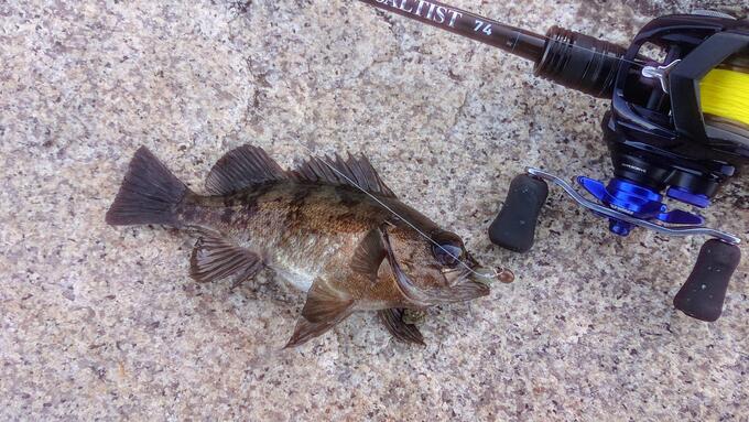 今シーズンの淡路メバルですが、今回ミドスト対応のバス用JHワームで明るい時間に連発しました。20cm程の魚が敷石護岸の際、隙間から飛び出して喰ってきました。