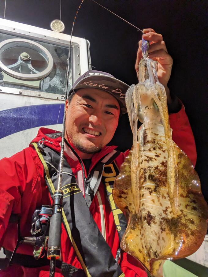 福井県小浜沖でのナイトティップランの釣果です! 少しキャストし、沖から引っ張りだし船の際でかけた一杯です