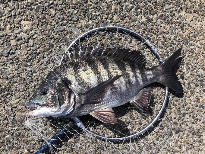 祝日の混雑を避けて、午後から神奈川県川崎市の運河へクロダイ狙いで行ってみました。状況が良く分からないので、クロダイ釣りの基本、底釣りで初めます。開始早々、同行の釣友がクロダイを釣り上げひと安心。刺し餌を海底に這わせるイメージで流すとすぐさまアタリ。良く食い込ませてからサオを立てるとズッシリとした魚の重みがサオに乗ってきました。ゆっくりと引きを楽しんで上がってきたのは40センチオーバーのクロダイ。その後、続けて2枚追加して満足のいく釣果となりました。今回も魚に見えないピンクフロロ磯ハリスを使いましたが、底に這わせる釣りでもかなりの効果があるように感じます。