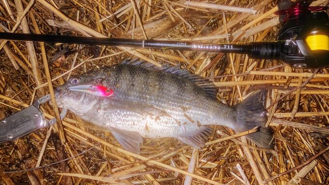 28日夜に淀川へ釣行しました。3月末とは思えない寒さでしたが、ソリッドバイブ65のボトム攻めでチヌがヒットしました。