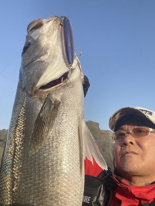 今朝は近場のゴロタとサーフへシーバス狙い。気象状況は晴天ベタ凪の為、早朝まだ薄暗い内から実釣スタートです。遠浅のゴロタ海岸、運が良ければ凪ヒラスズキも狙えます。今春発売予定(目前)のソニックブームシリーズから、「SBミノー125F」ケイムラをフルキャスト!飛距離抜群ミノーですよ⭕️ ロッドをやや立て気味に水面直下をイメージして、スローリトリーブです。開始早々に「コンッ!」とバイト!ブレイクより手前でヒットはマルスズキ。ベイトを一杯喰ってて、ベリーがポッコリしたナイスコンディションな個体でした。