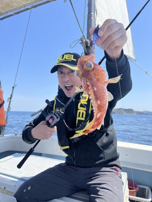 今回の久し振りのデイイカメタル釣行…随分と感覚と勘を取り戻し乍ら釣っていると、ガツン!っと引ったくるアタリがあり、「これはイカではなく魚やねっ!」って言って巻き上げて上がって来たのは、美味しか綺麗で可愛か外道のアヤメカサゴちゃんでした♩デイイカメタルの底ベタを誘う釣りではよく釣れる根魚…これは根魚の活性が上がってるな?って思って、持参していた鯛ラバタックルとインチクタックルも使って合計6匹釣って(写真無し)、やはり備えあれば憂いなし!デイイカメタル釣行にはソルティーラバースライドとソルティーベイトは必須アイテムだ!って確信しました♪父テリーと弟の大輔も同じくソルティーベイトで根魚を連発しまして、激シブなヤリイカ、ケンサキイカの代わりのお土産を釣りつゝ…本命の大剣を目指して黙々と釣り続ける…バシケンと父テリー、弟大輔でしたとさっ♫…つづく…