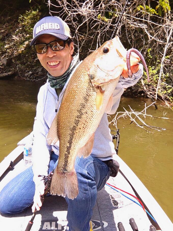 昨日は津久井湖に出撃したのですが、5/2の大雨の影響で水位が3mも急増! ショアラインにはウッドチップなど浮き、シャローカバーが増えたものの、へらぶなのはたきが始まり、にぎやかな状況に。。。 こんな時はハタキの影響を受けにくい水深のあるレイダウンや倒れ込んだ竹などが良かったりしますよね。 ってことで、そんなところをオクタルクローラーのヘビーネコ、込み入ったところはライズハンズクローのテキサスで狙い42㎝と37㎝をキャッチ。 その後は前回反応の良かったジャークベイトパターンがまだ効くのかをチェックしたのですが。。。 クランクベイトなどで少し深いレンジもチェックしたのですが、今回はちょっと難しかったですね。 でも、シャローにはベイトがたくさん入っていたので、へらぶなのはたきが落ち着き水温が上がれば期待できそうな感じです。来週は巻物も楽しめるかな??