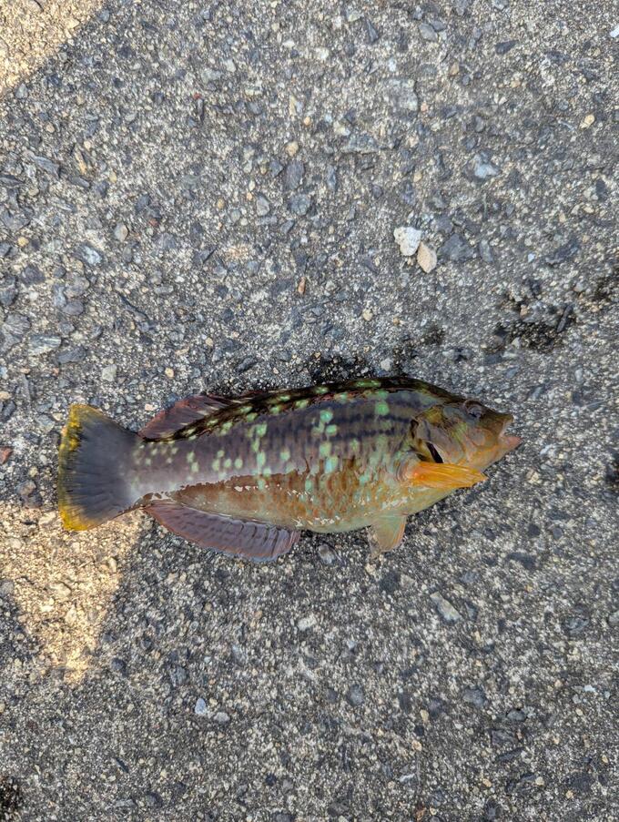 実家近くで作業中1時間ほど休憩をしました。近くに波止場があるのでメバリング!どんこや小さなメバル、小アジが来ましたが1番大きかったのは磯ベラでした。海水温ももう少し上がってくると魚も活動し始めます。