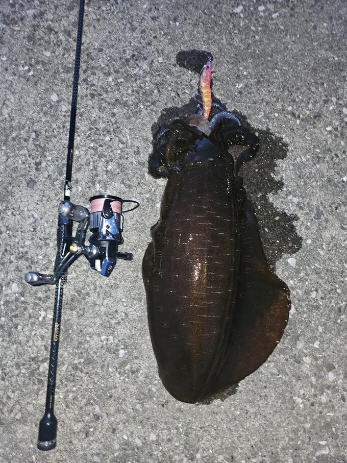 今日も夕マズメからの実釣 まだ明るいうちにマグパタのリアイソで500gほどのイカを釣った後の暗くなってラインがギリ見える程度の時間にもそーっと引っ張っていってくれました キロ半にはビミョーに届かず
