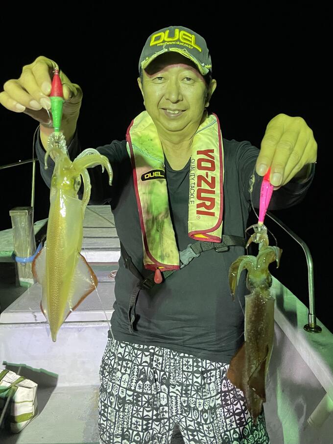 知人門司さんの船でこの時期恒例の夜焚きのヤリイカ釣りへ。開始直後からポツリポツリながらヤリイカ、ケンサキなどが釣れ、アタリも色々なパターンがあり、夜風も気持ち良く楽しめた釣行でした。