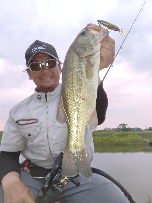 連日の猛暑続きだった筑後地方に待望の夕立ち!!安全確保の為 雷雲が過ぎ去るまで待機していたので僅かな時間でしたが流速ましたクリークで軽い引き抵抗でストレス無く流れを切って引いていたラトゥールシャッド60SFを下からひったくりバイト!!浮上時にホログラムリップが下のレンジからバスをコールアップさせたのかガッツリとハーモニーカ喰い!!光量が少ない日暮れでもホログラムリップはバイトマーカーになって深いバイトを誘発させてくれます。