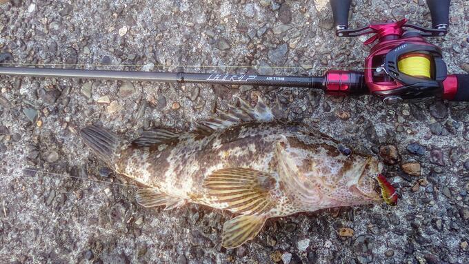 舞鶴方面に釣行しました。朝マズメに、ソリッドバイブ55にヒットしたのはタケノコメバル38cmでした。ヒットカラーはHGRでした。