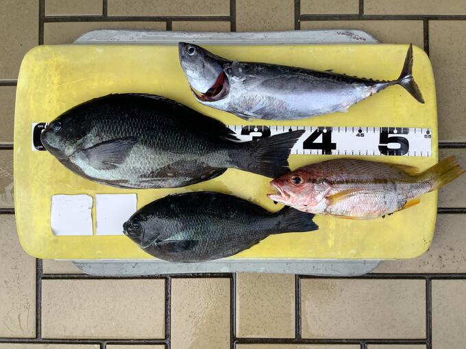 先々週、グレが9匹釣れた愛媛県由良半島にある防波堤へ行って来ました。暑いので朝5時から午前11時まで釣ることに!先々週とは違って、グレが当たってくれません…。とにかく、豆アジとスズメダイの数が半端なく、 撒き餌を何処に投げても、下から沸いて出て来ます。ウキの着水音にも反応してくるので、始末に終えません。餌取りに強いはずの生ムキミを刺し餌に使うも、なかなか通用しません。なので、撒き餌を打たずに仕掛けを深く入れ込んで、やっとグレを仕留める事が出来ました。引き出しの無さを痛感させられた釣行でした