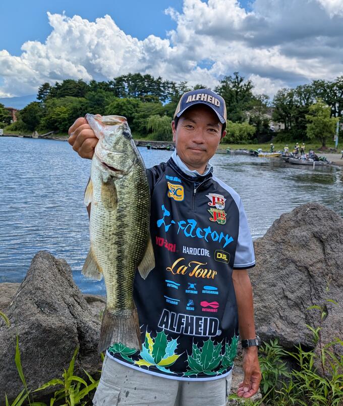 沖のワカサギにつくバスをライブシューティングで釣りました。