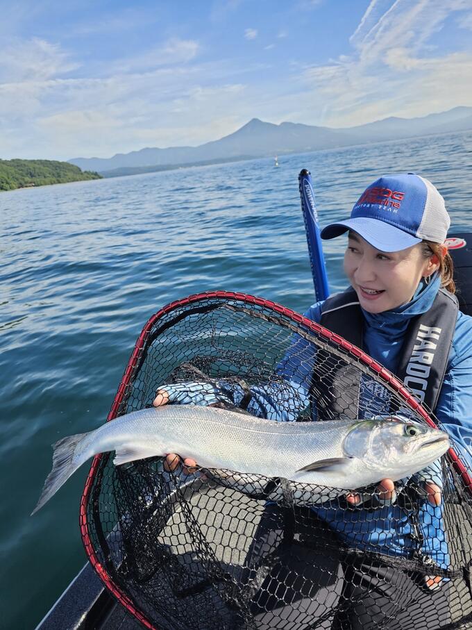 バスボートを持ち込んで、初めての猪苗代湖レイクジギングへ!イメージとしては少し早めのSLJといった感じ。開始早々に58cmのサクラマスがヒット。本命のイワナはボート際でフックオフでした。