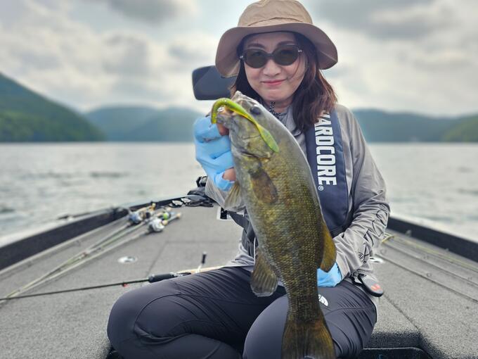 桧原湖釣行。ハンプ周辺をキャロライナリグでゆっくりトレイスしてキャッチ!