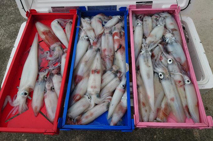 ケンサキイカを釣りに行ってみました、潮が良く流れ、オモリグスタート40号ロングステイが良かったと思います