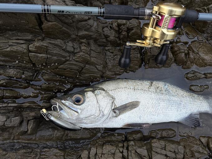 モンスターゲーム9に巻き替えたので、また夏磯へ! サラシの中でヒラスズキゲット! 1日使い倒しましたが、色落ちもなく気に入りました!