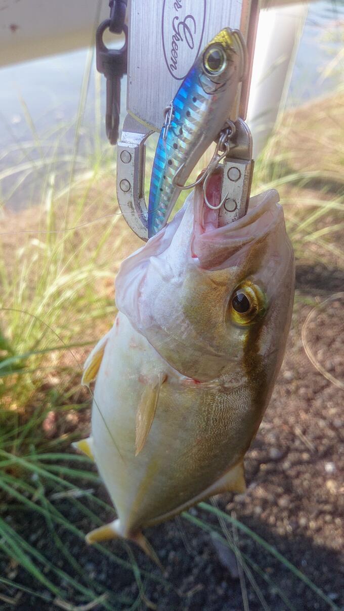 三重県南部の釣行で朝一に小型カンパチの反応が良かったです。ハタ狙いのソリッドバイブに複数ヒットしました。