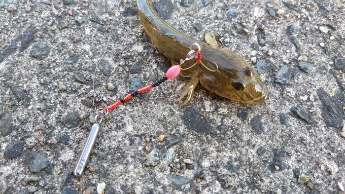 懲りずに新たな自作ルアーにてヒット! フニャフニャでリーダーへの絡みが酷くてボツ