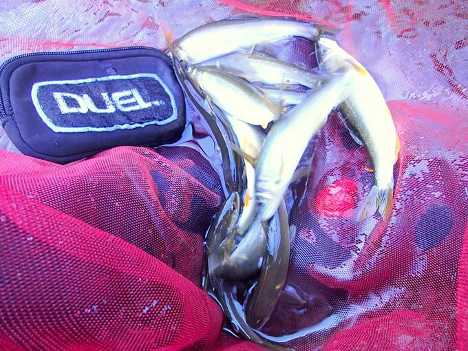 超渇水の泳がせ釣りには、アーマードFH鮎水中糸、定番です。激渋の状況下、夕刻2間足らずでツ抜け!信頼に応えてくれました。