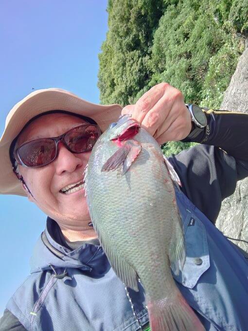 山口県周南市徳山沖磯にグレ狙いで釣行しました。開始はコッパグレが沢山釣れましたが、次第に型が良くなりハリスをピンクフロロカーボン1.5号に交換した1投目に来ました!!瀬戸内海では大きめの32センチが釣れ満足の釣行となりました。朝1番はアオリイカ狙いでした。二桁釣れましたが今後の楽しみにコロッケサイズはリリースしました。