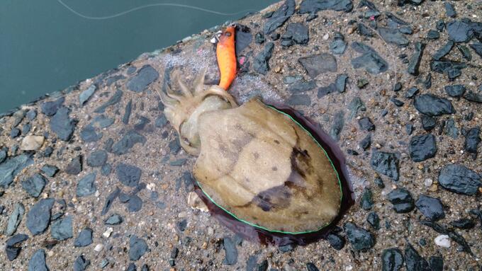 新しい餌木の動きをみたくて港でアクションさせてたら釣れたw