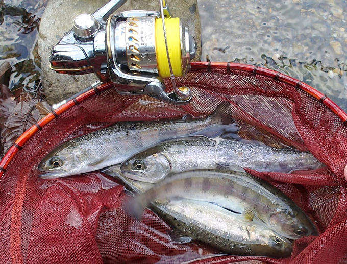 4日土曜日、安曇川上流葛川漁協区が解禁。地元の私は、昼過ぎに漁協で情報交換。早朝から入釣した先行者が上がったポイントを教えてもらい、早速釣り残しのアマゴをアタックしに、手もかじかむ極低温の段々瀬に立つ。そして、Armored® F+ Pro トラウト 150m 0.08号の抜群の操作性に、元気なアマゴが猛然とアタック。ルアーの後ろを追尾するアマゴを確認。そして、すぐさま快感のヒット2レンチャン。その後、釣り下り、瀬の開きで天然アマゴの良型と放流スモルトを追加。ハイプレッシャー下、2時間弱の快釣に大満足&高感度ラインに大感謝でした!
