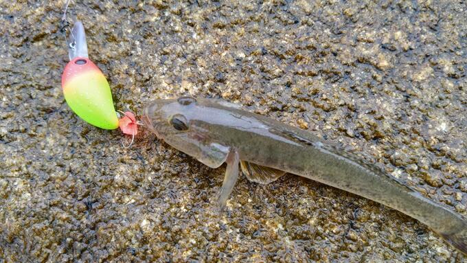 昨夜からの降雨で、濁りが強くハゼの反応悪くバイトもない中、何とか1匹釣れた♪