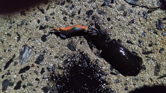 船底の影から飛び出してきた小アオリをサイトで♪