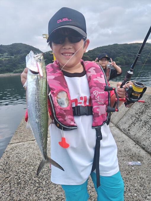 双子のお兄ちゃんが釣ったのを見て弟も釣りたい!!と言い出したのでまだまだ港内に群れが入ってると思いライトタックルでスーパーライトショアジギングで狙うとあっさり同サイズをゲット!!鮮やかなイエローカラーは夕まずめの光量が少ない時間帯でも非常に見易く子供でも着底が一目瞭然!!タックルデータにはブランカ18gとなってますが今はラインナップから無くなりましたがライトゲームには必需品だったブランカ7g!マアジのナブラ撃ちや小型青物狙いには最適なウエイトとアクションだっただけに再販して欲しい逸品!!