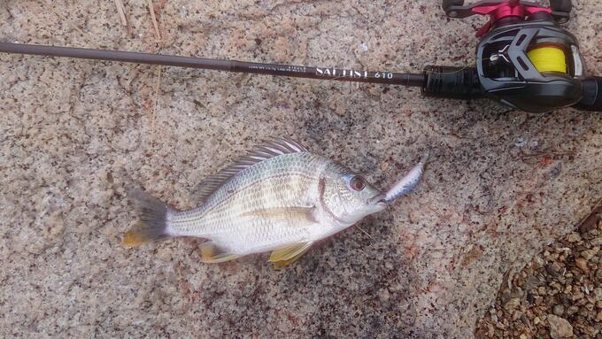 淀川のサバゲー中にヒットしたキビレです。浅いポイントをLGヘビーミノーの速巻きで釣れました。20cm級が連発したので、パターンなのか?再現性は有るのか?次も試してみたいですね。