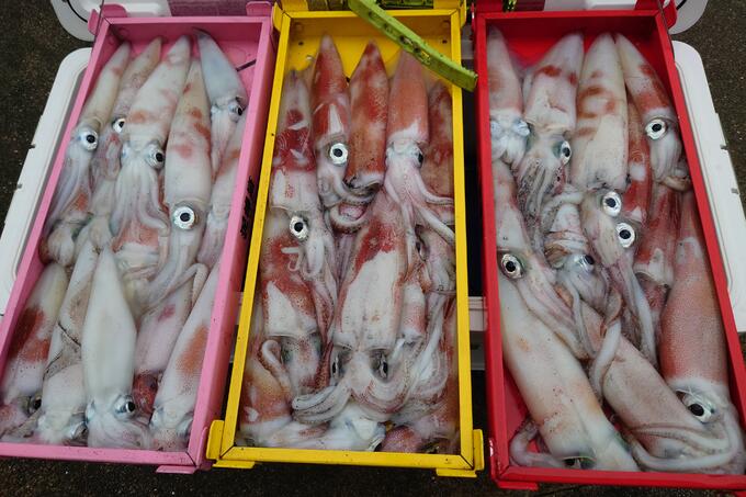 今年度ラストケンサキイカ釣りに行ってみましたパラ流しで100m指示棚60mケンサキイカはConditionもよく肉厚でした.peラインもそろそろ交換します勿論DUEL