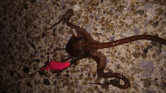 ヒイカ狙いでボトム探ってたら手長ダコ…