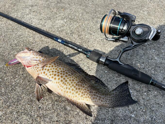 長崎県北部の離島。エギング、アジングメインの釣行の中、ベイトフィッシュの回遊が多く見られたのでタックル流用してモンスターショット65をセット。ラインはスーパーエックスワイヤー4エギングに魚に見えないピンクフロロ20ポンド。港内で中層を通すとオオモンハタ。ボトム付近の横引でキジハタ。ボトムバンピングでカサゴがヒット。とてもエキサイティングな遠征となりました。