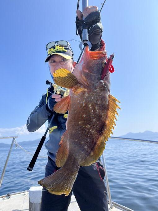 うっかりしまして…釣果速報に投稿し損ねてしまっていたので、事後報告になりますが投稿させて頂きます。10/13(月祝)にDUEL開発統括の小松さん、DUELライン開発チームのメンバーと、新作のラインと、新作のソルティーベイトのテスト釣行に行って参りました。ラインチームのメンバーはスーパーライトジギング、ライトジギング縛り、私と小松さん、もう1人の開発スタッフの方が新しいソルティーベイト縛りで、新作ラインを用いてテストさせて頂きました♪新しいソルティーベイトは、インチクとタイラバのハイブリッドで、タイは勿論!根魚、青物にも効くスグレモノ♫今回はタイラバの釣り方暫くで釣らせて頂きましたが、今回はタイはお留守のようで良型のキジハタ、アオナ、オオモンハタの根魚に遊んでもらいました!新しいラインですが…多くは語れませんが、前作に比べるととてもしなやかになってて、かなりノットが組み易くなったのと、おそらくユーザーの皆様が「コレが欲しかったんよ!」って言って下さること間違い無し!のラインとなっておりますので、発売まで今暫くお待ち下さいますよう宜しくお願い申し上げます♩つづく…
