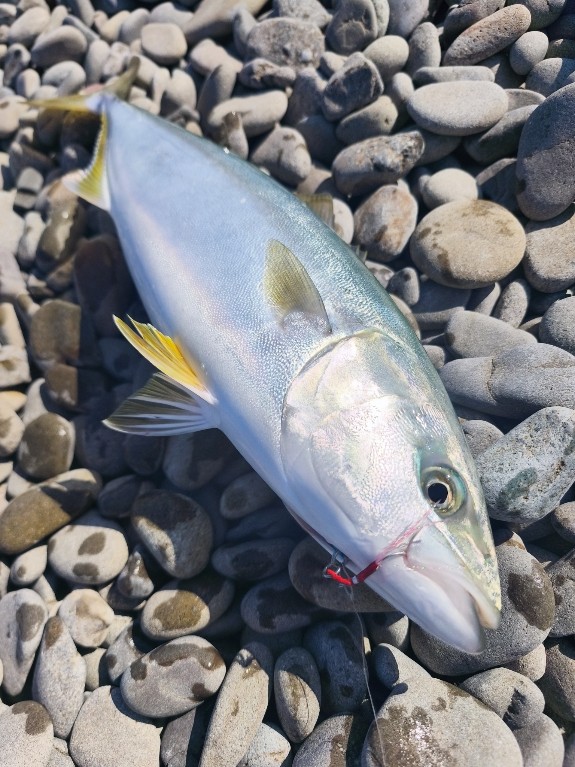 いいお天気だったので、ショアジギに。 50㎝nハマチ・・・このサイズになると、やり取りが楽しい! いいファイトを見せてくれました。