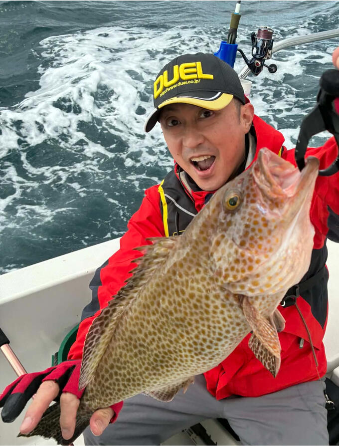 つづき…アコウをキャッチした後に、メインターゲットのヒラマサを狙って釣り続けるも、なかなか本命が口を使ってくれないので、ライトタックルに持ち替えて、ルアーはブランカを使用してSLJ♪をやってみたら…中層まで誘って当たって来たのは…アコウと同じ根魚だけど、遊泳力が高くハイレスポンスな根魚の45cm強のオオモンハタでした!このタックルには先日に、DUELのHPやSNS等にて今年12月上旬頃より発売の発表されたばかりの、H.D CARBON EXのプロトを使用♫商品版も追求されたタフさは勿論!ですが、ピンクフロロ同じくしなやかでノットが組み易いので、エキスパートは基ですがビギナーの方にも扱い易い商品となっておりますので、今年12月上旬に新発売のH.D CARBON EXに乞うご期待!つづく…