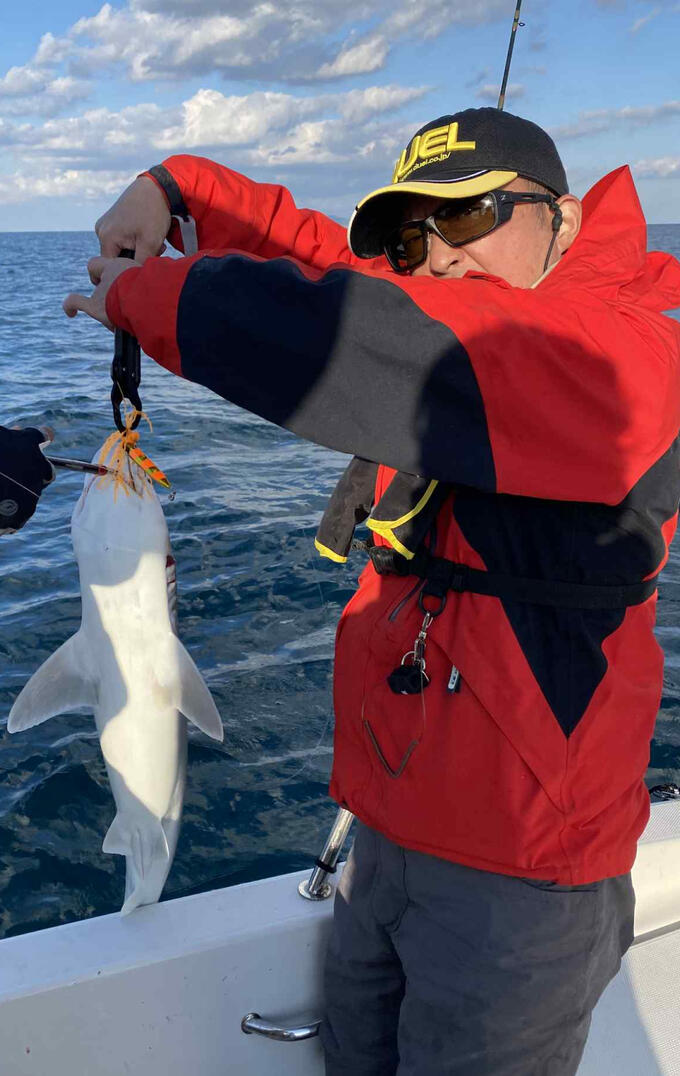 おまけ…最後の1投!と本当の最後の最後に…モンスター9をメインラインにピンクフロロのリーダー、そして来年新しくなってリリースされるソルティーベイトの従来モデルをひったくる様に持って行って、ぐりぐりごりごりのパワーファイトをしてくるたお相手は…ホシザメでした!最後の最後に本命のヒラマサと思わせてのホシザメ…フカは不可…的に、もうどがしこぉ〜っ!?って思うバシケンでしたとさっ♫(笑)